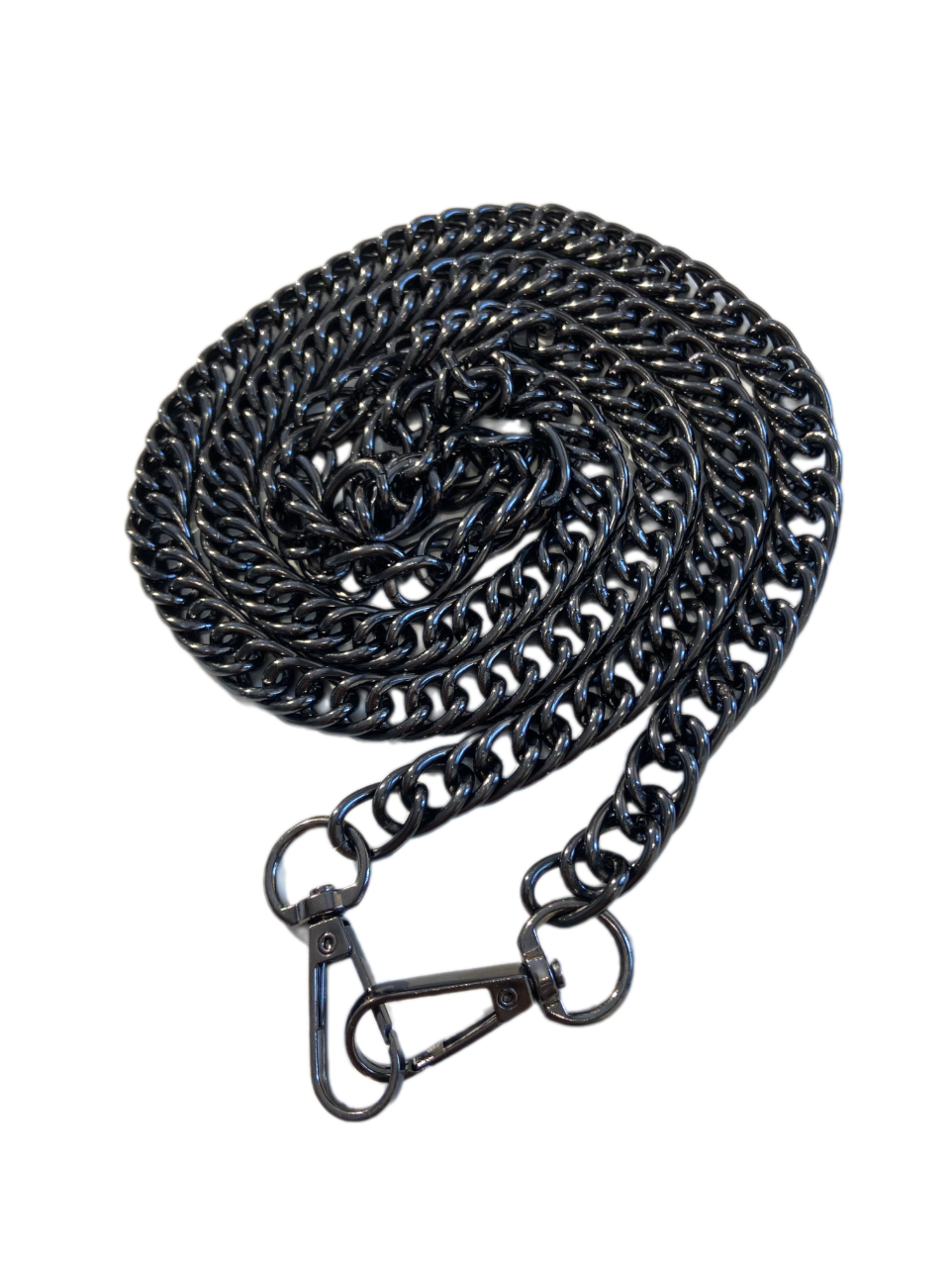 Αλυσίδα 120 cm από μέταλλο σε μαύρο νίκελ, με γάντζους και κρίκο. Ιδανική για πλεκτές και χειροποίητες τσάντες με urban ή industrial στυλ.