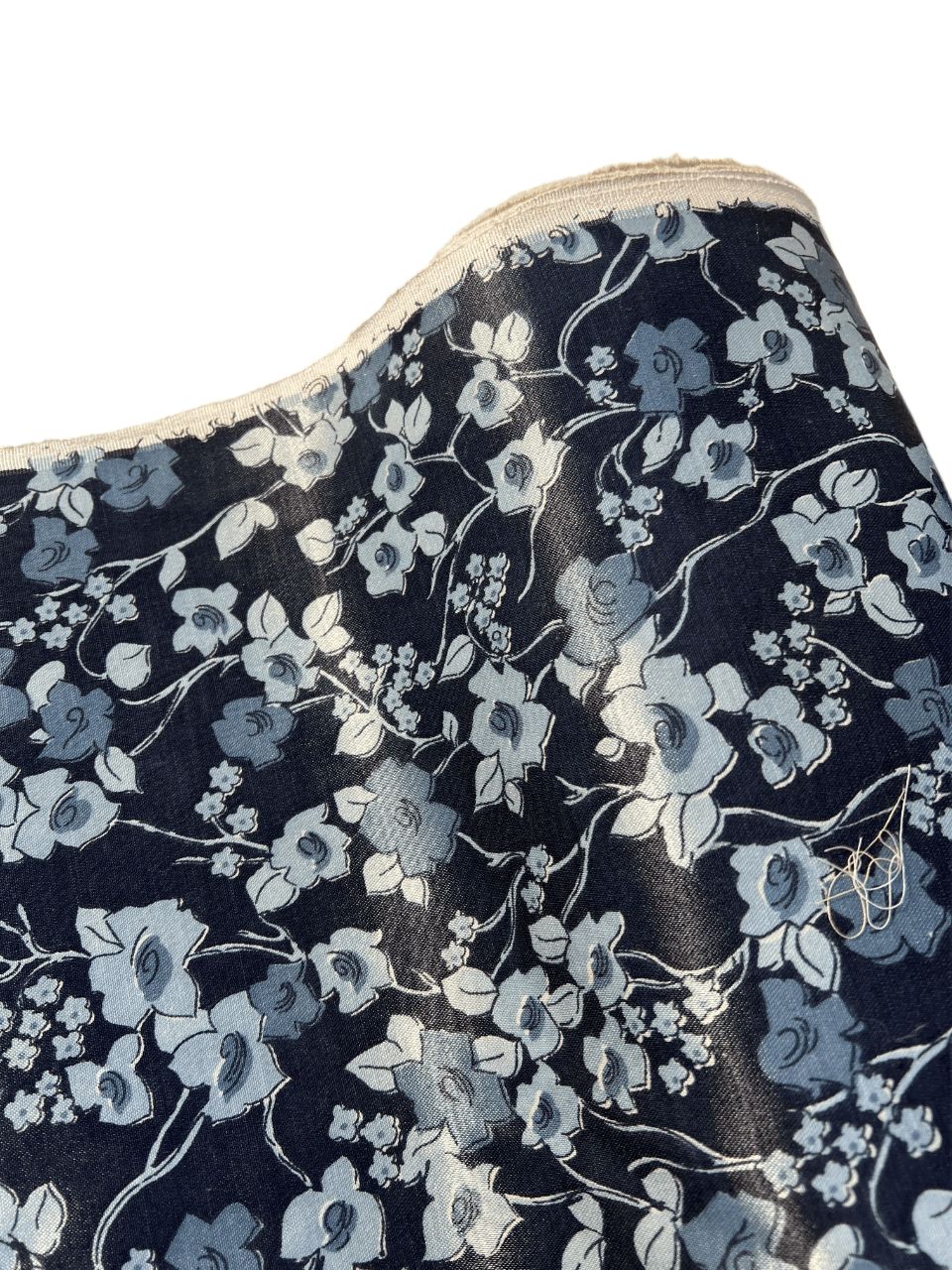 Κομψό σατέν ύφασμα φόδρας με διακριτική γυαλάδα και εντυπωσιακό λουλουδάτο μοτίβο σε αποχρώσεις του γαλάζιου πάνω σε σκούρο φόντο. Η απαλή του υφή και η λεία επιφάνεια το καθιστούν ιδανική επιλογή για εσωτερικές επενδύσεις σε τσάντες, πορτοφόλια, νεσεσέρ και υφασμάτινα αξεσουάρ. Συνδυάζει αισθητική και πρακτικότητα, προσφέροντας ένα καλαίσθητο και ανθεκτικό εσωτερικό τελείωμα.